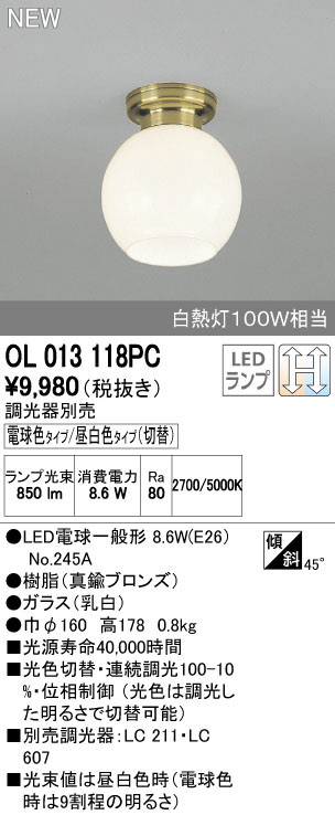 ODELIC ¥ª¡¼¥Ç¥ê¥Ã¥¯ ¾®·¿¥·¡¼¥ê¥ó¥°¥é¥¤¥È OL013118PC