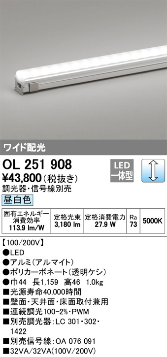 ODELIC ¥ª¡¼¥Ç¥ê¥Ã¥¯ ¼¼ÆâÍÑ´ÖÀܾÈÌÀ OL251908
