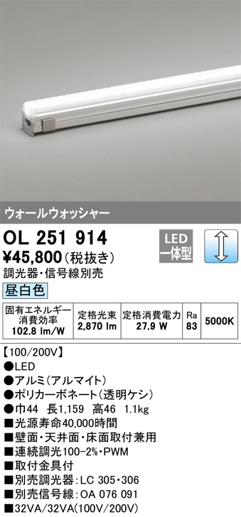ODELIC ¥ª¡¼¥Ç¥ê¥Ã¥¯ ¼¼ÆâÍÑ´ÖÀܾÈÌÀ OL251914