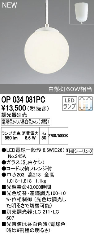 ODELIC ¥ª¡¼¥Ç¥ê¥Ã¥¯ ¥Ú¥ó¥À¥ó¥È¥é¥¤¥È OP034081PC