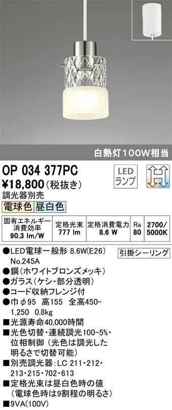 ODELIC ¥ª¡¼¥Ç¥ê¥Ã¥¯ ¥Ú¥ó¥À¥ó¥È¥é¥¤¥È OP034377PC