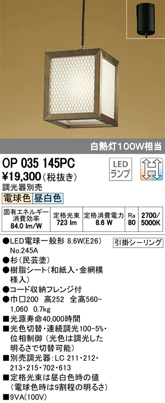 ODELIC ¥ª¡¼¥Ç¥ê¥Ã¥¯ ¥Ú¥ó¥À¥ó¥È¥é¥¤¥È OP035145PC