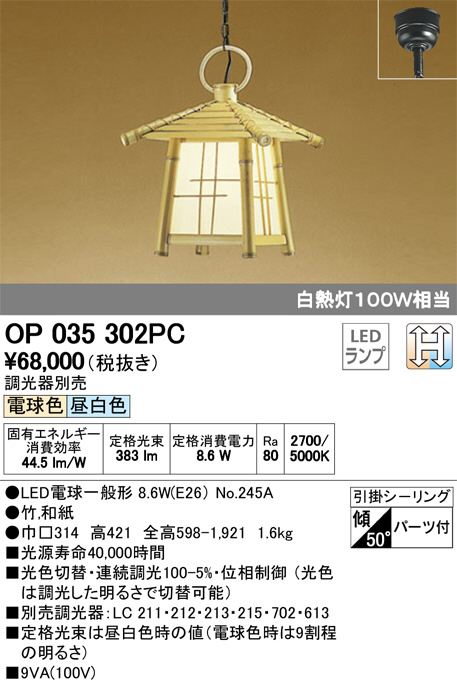 ODELIC ¥ª¡¼¥Ç¥ê¥Ã¥¯ ¥Ú¥ó¥À¥ó¥È¥é¥¤¥È OP035302PC