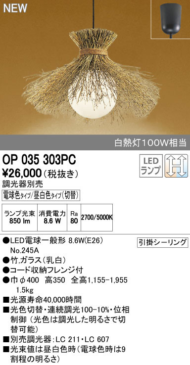 ODELIC ¥ª¡¼¥Ç¥ê¥Ã¥¯ ¥Ú¥ó¥À¥ó¥È¥é¥¤¥È OP035303PC