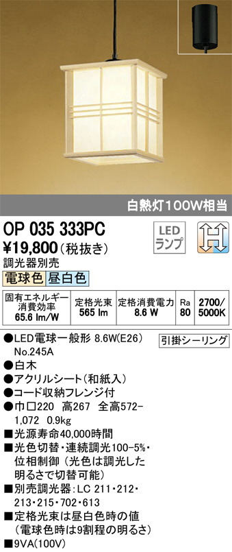ODELIC ¥ª¡¼¥Ç¥ê¥Ã¥¯ ¥Ú¥ó¥À¥ó¥È¥é¥¤¥È OP035333PC
