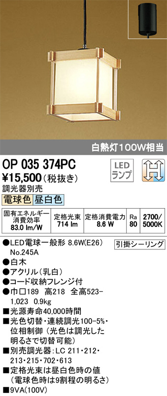 ODELIC ¥ª¡¼¥Ç¥ê¥Ã¥¯ ¥Ú¥ó¥À¥ó¥È¥é¥¤¥È OP035374PC