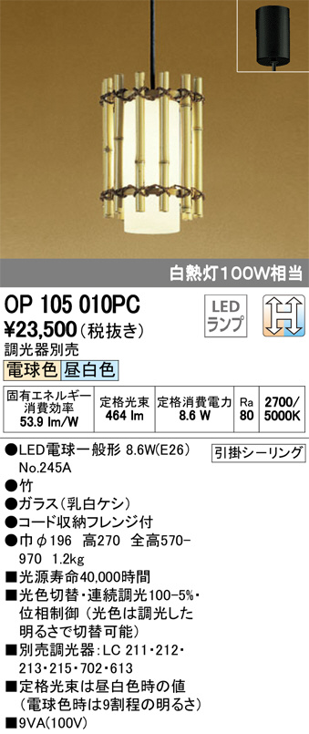 ODELIC ¥ª¡¼¥Ç¥ê¥Ã¥¯ ¥Ú¥ó¥À¥ó¥È¥é¥¤¥È OP105010PC