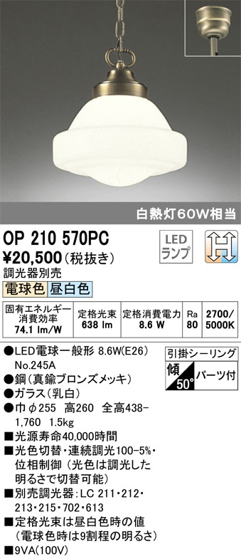 ODELIC ¥ª¡¼¥Ç¥ê¥Ã¥¯ ¥Ú¥ó¥À¥ó¥È¥é¥¤¥È OP210570PC