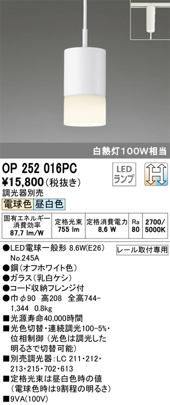 ODELIC ¥ª¡¼¥Ç¥ê¥Ã¥¯ ¥Ú¥ó¥À¥ó¥È¥é¥¤¥È OP252016PC