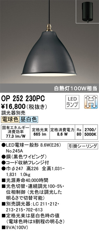 ODELIC ¥ª¡¼¥Ç¥ê¥Ã¥¯ ¥Ú¥ó¥À¥ó¥È¥é¥¤¥È OP252230PC