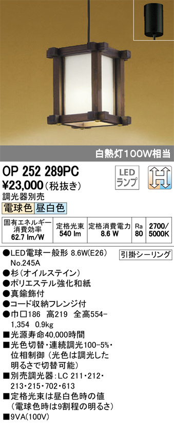 ODELIC ¥ª¡¼¥Ç¥ê¥Ã¥¯ ¥Ú¥ó¥À¥ó¥È¥é¥¤¥È OP252289PC