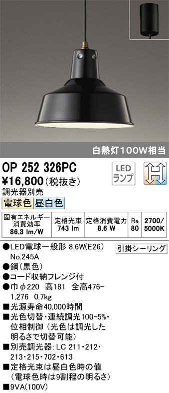 ODELIC ¥ª¡¼¥Ç¥ê¥Ã¥¯ ¥Ú¥ó¥À¥ó¥È¥é¥¤¥È OP252326PC