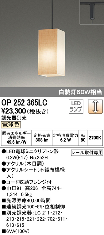 ODELIC ¥ª¡¼¥Ç¥ê¥Ã¥¯ ¥Ú¥ó¥À¥ó¥È¥é¥¤¥È OP252365LC