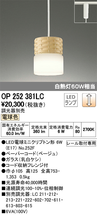 ODELIC ¥ª¡¼¥Ç¥ê¥Ã¥¯ ¥Ú¥ó¥À¥ó¥È¥é¥¤¥È OP252381LC