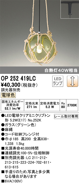 ODELIC ¥ª¡¼¥Ç¥ê¥Ã¥¯ ¥Ú¥ó¥À¥ó¥È¥é¥¤¥È OP252419LC