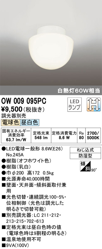 ODELIC ¥ª¡¼¥Ç¥ê¥Ã¥¯ ¥Ð¥¹¥ë¡¼¥à¥é¥¤¥È OW009095PC