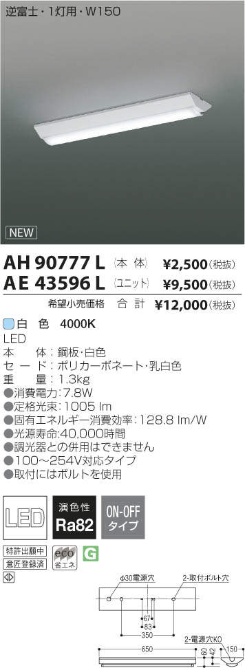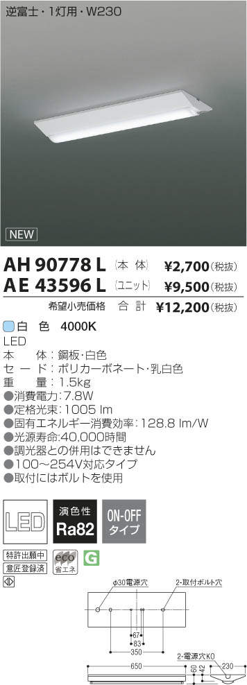 ¥³¥¤¥º¥ß¾ÈÌÀ KOIZUMI LED¥æ¥Ë¥Ã¥È AE43596L