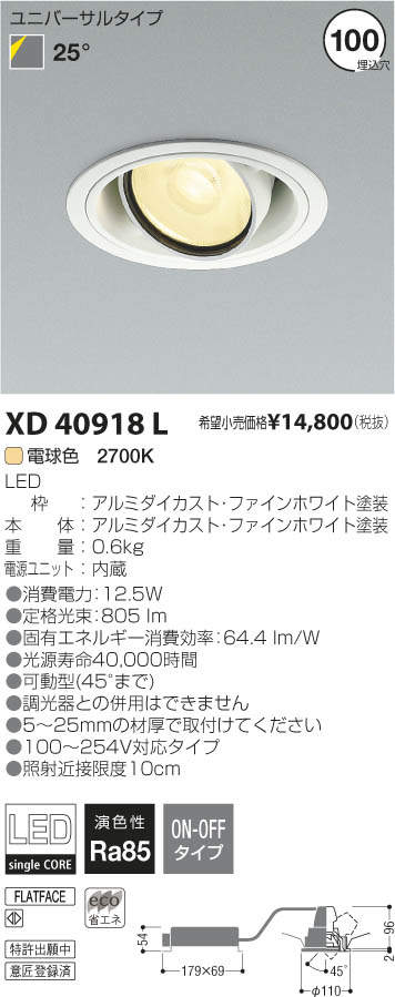 ¥³¥¤¥º¥ß¾ÈÌÀ KOIZUMI LED ¥À¥¦¥ó¥é¥¤¥È XD40918L