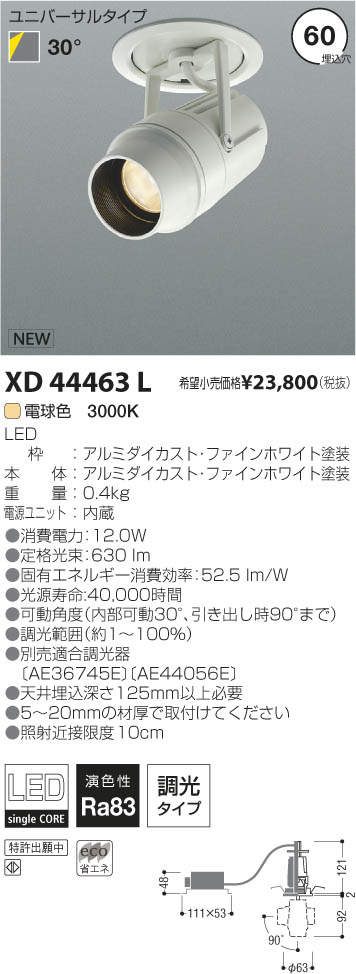 ¥³¥¤¥º¥ß¾ÈÌÀ KOIZUMI LED¥À¥¦¥ó¥¹¥Ý¥Ã¥È¥é¥¤¥È XD44463L
