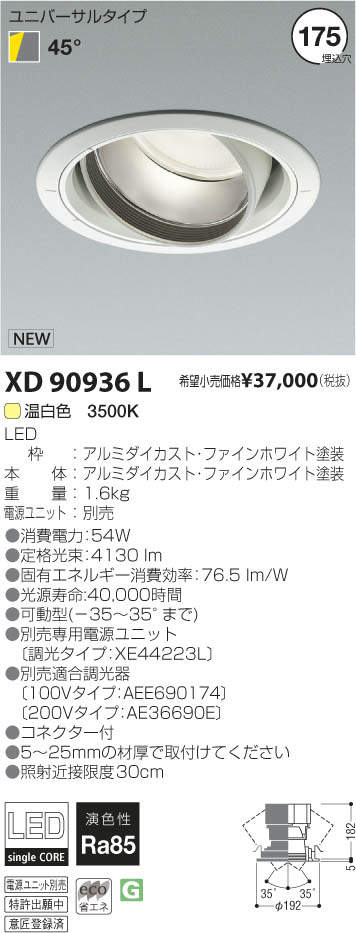 ¥³¥¤¥º¥ß¾ÈÌÀ KOIZUMI LED¥æ¥Ë¥Ð¡¼¥µ¥ë¥À¥¦¥ó¥é¥¤¥È XD90936L