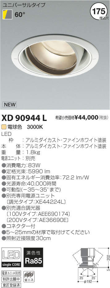 ¥³¥¤¥º¥ß¾ÈÌÀ KOIZUMI LED¥æ¥Ë¥Ð¡¼¥µ¥ë¥À¥¦¥ó¥é¥¤¥È XD90944L