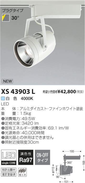 ¥³¥¤¥º¥ß¾ÈÌÀ KOIZUMI LED¥¹¥Ý¥Ã¥È¥é¥¤¥È XS43903L