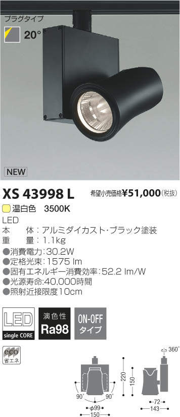 ¥³¥¤¥º¥ß¾ÈÌÀ KOIZUMI LED ¥¹¥Ý¥Ã¥È¥é¥¤¥È XS43998L
