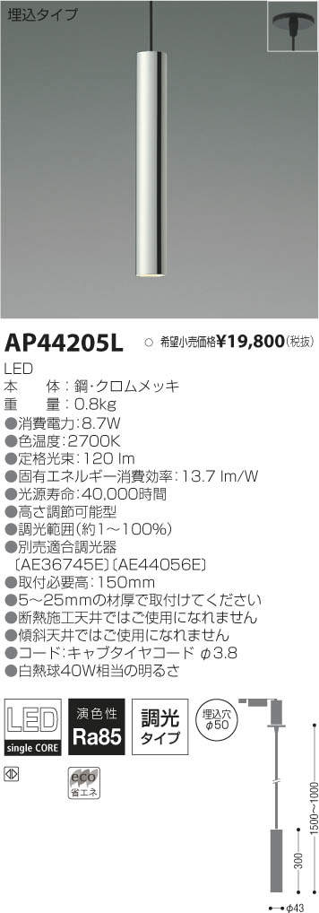 ¥³¥¤¥º¥ß¾ÈÌÀ KOIZUMI LED ¥Ú¥ó¥À¥ó¥È AP44205L