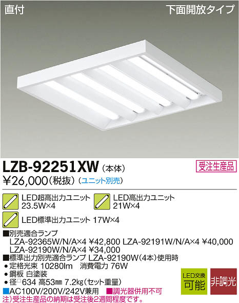 ¢£ÊÌÇäŬ¹ç¥é¥ó¥×LZA-92365W/N/A¡ß4 ¡ï42¡¤800 LZA-92191W/N/A¡ß4 ¡ï40¡¤000 LZA-92190W/N/A¡ß4 ¡ï34¡¤000|¢£AC100V/200V/242V·óÍÑ|¢£Ä´¸÷´ïÊ»ÍÑÉÔ²Ä|Ãí¡Ë¼õÃíÀ¸»ºÉʤÎǼ´ü¤Ï¼õÃí¸å£²½µ´ÖÄøÅ٤Ǥ¹¡£|¢£É¸½à½ÐÎÏÊÌÇäŬ¹ç¥é¥ó¥× LZA-92190W¡Ê4Ëܡ˻ÈÍÑ»þ Äê³Ê¸÷« 10280lm¡¡¾ÃÈñÅÅÎÏ 76W