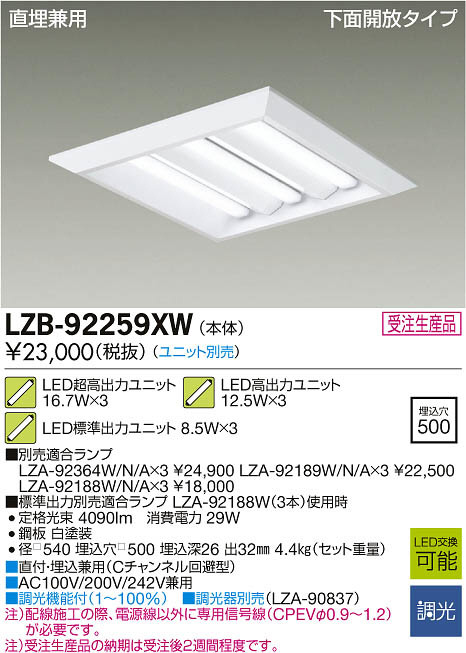 ¢£ÊÌÇäŬ¹ç¥é¥ó¥×LZA-92364W/N/A¡ß3 ¡ï24¡¤900 LZA-92189W/N/A¡ß3 ¡ï22¡¤500 LZA-92188W/N/A¡ß3 ¡ï18¡¤000|¢£Ä¾ÉÕ¡¦Ëä¹þ·óÍÑ¡ÊC¥Á¥ã¥ó¥Í¥ë²óÈò·¿¡Ë|¢£AC100V/200V/242V·óÍÑ|¢£Ä´¸÷µ¡Ç½ÉÕ¡Ê1¡Á100%¡Ë|¢£Ä´¸÷´ïÊÌÇä¡ÊLZA-90837¡Ë|Ãí¡ËÇÛÀþ»Ü¹©¤ÎºÝ¡¢ÅŸ»Àþ°Ê³°¤ËÀìÍÑ¿®¹æÀþ¡ÊCPEV¦Õ0.9¡Á1.2¡Ë¤¬É¬ÍפǤ¹¡£|Ãí¡Ë¼õÃíÀ¸»ºÉʤÎǼ´ü¤Ï¼õÃí¸å£²½µ´ÖÄøÅ٤Ǥ¹¡£|¢£É¸½à½ÐÎÏÊÌÇäŬ¹ç¥é¥ó¥× LZA-92188W¡Ê3Ëܡ˻È