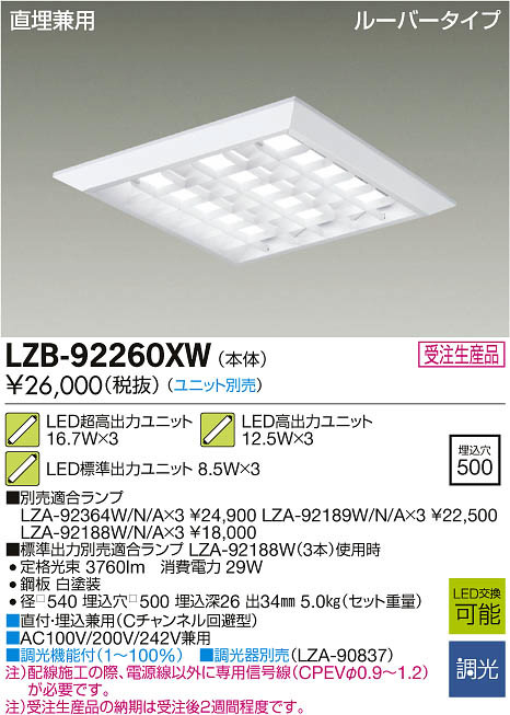 ¢£ÊÌÇäŬ¹ç¥é¥ó¥×LZA-92364W/N/A¡ß3 ¡ï24¡¤900 LZA-92189W/N/A¡ß3 ¡ï22¡¤500 LZA-92188W/N/A¡ß3 ¡ï18¡¤000|¢£Ä¾ÉÕ¡¦Ëä¹þ·óÍÑ¡ÊC¥Á¥ã¥ó¥Í¥ë²óÈò·¿¡Ë|¢£AC100V/200V/242V·óÍÑ|¢£Ä´¸÷µ¡Ç½ÉÕ¡Ê1¡Á100%¡Ë|¢£Ä´¸÷´ïÊÌÇä¡ÊLZA-90837¡Ë|Ãí¡ËÇÛÀþ»Ü¹©¤ÎºÝ¡¢ÅŸ»Àþ°Ê³°¤ËÀìÍÑ¿®¹æÀþ¡ÊCPEV¦Õ0.9¡Á1.2¡Ë¤¬É¬ÍפǤ¹¡£|Ãí¡Ë¼õÃíÀ¸»ºÉʤÎǼ´ü¤Ï¼õÃí¸å£²½µ´ÖÄøÅ٤Ǥ¹¡£|¢£É¸½à½ÐÎÏÊÌÇäŬ¹ç¥é¥ó¥× LZA-92188W¡Ê3Ëܡ˻È