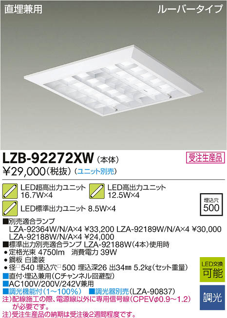 ¢£ÊÌÇäŬ¹ç¥é¥ó¥×LZA-92364W/N/A¡ß4 ¡ï33¡¤200 LZA-92189W/N/A¡ß4 ¡ï30¡¤000 LZA-92188W/N/A¡ß4 ¡ï24¡¤000|¢£Ä¾ÉÕ¡¦Ëä¹þ·óÍÑ¡ÊC¥Á¥ã¥ó¥Í¥ë²óÈò·¿¡Ë|¢£AC100V/200V/242V·óÍÑ|¢£Ä´¸÷µ¡Ç½ÉÕ¡Ê1¡Á100%¡Ë|¢£Ä´¸÷´ïÊÌÇä¡ÊLZA-90837¡Ë|Ãí¡ËÇÛÀþ»Ü¹©¤ÎºÝ¡¢ÅŸ»Àþ°Ê³°¤ËÀìÍÑ¿®¹æÀþ¡ÊCPEV¦Õ0.9¡Á1.2¡Ë¤¬É¬ÍפǤ¹¡£|Ãí¡Ë¼õÃíÀ¸»ºÉʤÎǼ´ü¤Ï¼õÃí¸å£²½µ´ÖÄøÅ٤Ǥ¹¡£|¢£É¸½à½ÐÎÏÊÌÇäŬ¹ç¥é¥ó¥× LZA-92188W¡Ê4Ëܡ˻È