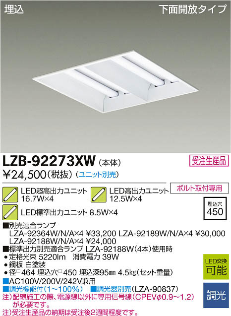 ¢£ÊÌÇäŬ¹ç¥é¥ó¥×LZA-92364W/N/A¡ß4 ¡ï33¡¤200 LZA-92189W/N/A¡ß4 ¡ï30¡¤000 LZA-92188W/N/A¡ß4 ¡ï24¡¤000|¢£AC100V/200V/242V·óÍÑ|¢£Ä´¸÷µ¡Ç½ÉÕ¡Ê1¡Á100%¡Ë|¢£Ä´¸÷´ïÊÌÇä¡ÊLZA-90837¡Ë|Ãí¡ËÇÛÀþ»Ü¹©¤ÎºÝ¡¢ÅŸ»Àþ°Ê³°¤ËÀìÍÑ¿®¹æÀþ¡ÊCPEV¦Õ0.9¡Á1.2¡Ë¤¬É¬ÍפǤ¹¡£|Ãí¡Ë¼õÃíÀ¸»ºÉʤÎǼ´ü¤Ï¼õÃí¸å£²½µ´ÖÄøÅ٤Ǥ¹¡£|¢£É¸½à½ÐÎÏÊÌÇäŬ¹ç¥é¥ó¥× LZA-92188W¡Ê4Ëܡ˻ÈÍÑ»þ Äê³Ê¸÷« 5220lm¡¡¾ÃÈñÅÅÎÏ 3