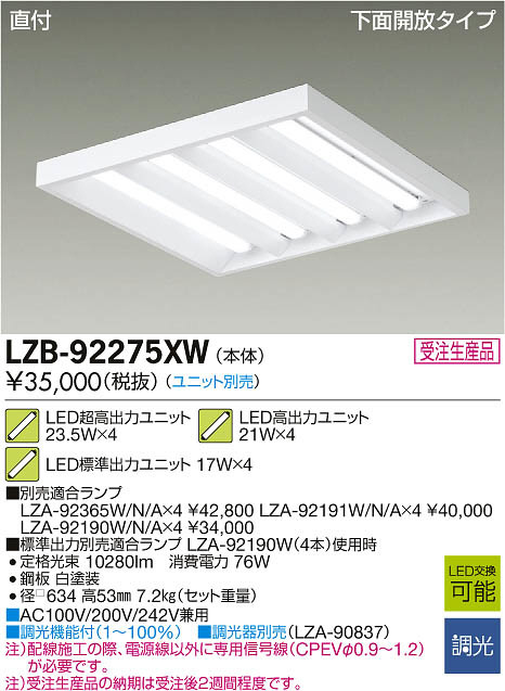 ¢£ÊÌÇäŬ¹ç¥é¥ó¥×LZA-92365W/N/A¡ß4 ¡ï42¡¤800 LZA-92191W/N/A¡ß4 ¡ï40¡¤000 LZA-92190W/N/A¡ß4 ¡ï34¡¤000|¢£AC100V/200V/242V·óÍÑ|¢£Ä´¸÷µ¡Ç½ÉÕ¡Ê1¡Á100%¡Ë|¢£Ä´¸÷´ïÊÌÇä¡ÊLZA-90837¡Ë|Ãí¡ËÇÛÀþ»Ü¹©¤ÎºÝ¡¢ÅŸ»Àþ°Ê³°¤ËÀìÍÑ¿®¹æÀþ¡ÊCPEV¦Õ0.9¡Á1.2¡Ë¤¬É¬ÍפǤ¹¡£|Ãí¡Ë¼õÃíÀ¸»ºÉʤÎǼ´ü¤Ï¼õÃí¸å£²½µ´ÖÄøÅ٤Ǥ¹¡£|¢£É¸½à½ÐÎÏÊÌÇäŬ¹ç¥é¥ó¥× LZA-92190W¡Ê4Ëܡ˻ÈÍÑ»þ Äê³Ê¸÷« 10280lm¡¡¾ÃÈñÅÅÎÏ