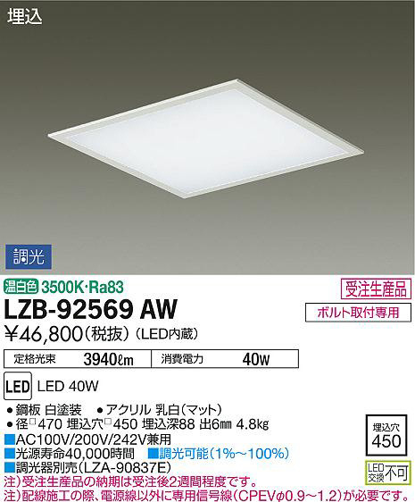 ¢£Ä´¸÷´ïÊÌÇä¡ÊLZA-90837E¡Ë¡¢Ãí¡Ë¼õÃíÀ¸»ºÉʤÎǼ´ü¤Ï¼õÃí¸å2½µ´ÖÄøÅ٤Ǥ¹¡£¡¢Ãí¡ËÇÛÀþ»Ü¹©¤ÎºÝ¡¢ÅŸ»Àþ°Ê³°¤ËÀìÍÑ¿®¹æÀþ¡ÊCPEV¦Õ0.9¡Á1.2¡Ë¤¬É¬ÍפǤ¹¡£¡¢Äê³Ê¸÷« 3940lm ¾ÃÈñÅÅÎÏ 40W¡¢Ra83