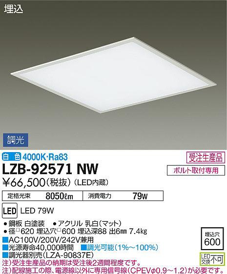 ¢£Ä´¸÷´ïÊÌÇä¡ÊLZA-90837E¡Ë¡¢Ãí¡Ë¼õÃíÀ¸»ºÉʤÎǼ´ü¤Ï¼õÃí¸å2½µ´ÖÄøÅ٤Ǥ¹¡£¡¢Ãí¡ËÇÛÀþ»Ü¹©¤ÎºÝ¡¢ÅŸ»Àþ°Ê³°¤ËÀìÍÑ¿®¹æÀþ¡ÊCPEV¦Õ0.9¡Á1.2¡Ë¤¬É¬ÍפǤ¹¡£¡¢Äê³Ê¸÷« 8050lm ¾ÃÈñÅÅÎÏ 79W¡¢Ra83