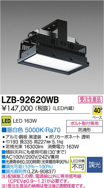 ¢£·¹¼ÐÅ·°æ¤Ë¤â»ÈÍѲÄǽ¡Ê30¡ë¤Þ¤Ç¡Ë|¢£AC100V/200V/242V·óÍÑ|¢£¸÷¸»¼÷Ì¿60¡¤000»þ´Ö¡Ê¸÷«°Ý»ýΨ90¡ó¡Ë|¢£Ä´¸÷²Äǽ¡Ê10¡ó¡Á100¡ó¡Ë|¢£Ä´¸÷´ïÊÌÇä¡ÊLZA-90837¡Ë|Ãí¡ËÇÛÀþ»Ü¹©¤ÎºÝ¡¢ÅŸ»Àþ°Ê³°¤ËÀìÍÑ¿®¹æÀþ¡ÊCPEV¦Õ0.9¡Á1.2¡Ë¤¬É¬ÍפǤ¹¡£|Ãí¡Ë¼õÃíÀ¸»ºÉʤÎǼ´ü¤Ï¼õÃí¸å£²½µ´ÖÄøÅ٤Ǥ¹¡£|Äê³Ê¸÷« 16300lm¡¡¾ÃÈñÅÅÎÏ 163W|Ra70