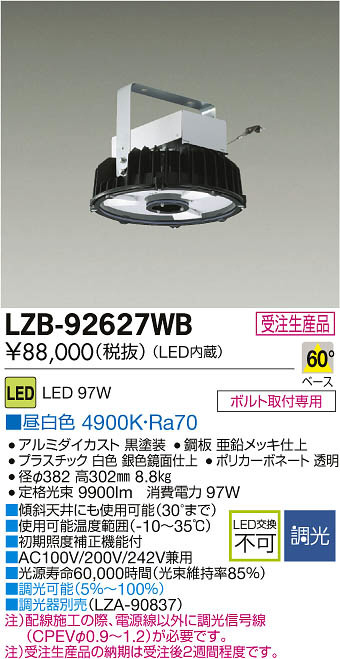 ¢£·¹¼ÐÅ·°æ¤Ë¤â»ÈÍѲÄǽ¡Ê30¡ë¤Þ¤Ç¡Ë|¢£»ÈÍѲÄǽ²¹ÅÙÈϰϡÊ-10¡Á35¡î¡Ë|¢£½é´ü¾ÈÅÙÊäÀµµ¡Ç½ÉÕ|¢£AC100V/200V/242V·óÍÑ|¢£¸÷¸»¼÷Ì¿60¡¤000»þ´Ö¡Ê¸÷«°Ý»ýΨ85¡ó¡Ë|¢£Ä´¸÷²Äǽ¡Ê5¡ó¡Á100¡ó¡Ë|¢£Ä´¸÷´ïÊÌÇä¡ÊLZA-90837¡Ë|Ãí¡ËÇÛÀþ»Ü¹©¤ÎºÝ¡¢ÅŸ»Àþ°Ê³°¤ËÄ´¸÷¿®¹æÀþ¡ÊCPEV¦Õ0.9¡Á1.2¡Ë¤¬É¬ÍפǤ¹¡£|Ãí¡Ë¼õÃíÀ¸»ºÉʤÎǼ´ü¤Ï¼õÃí¸å£²½µ´ÖÄøÅ٤Ǥ¹¡£|Äê³Ê¸÷« 9900lm¡¡¾ÃÈñÅÅÎÏ 97W|Ra70