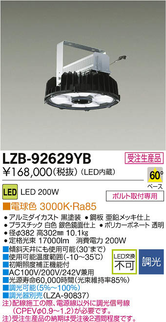 ¢£·¹¼ÐÅ·°æ¤Ë¤â»ÈÍѲÄǽ¡Ê30¡ë¤Þ¤Ç¡Ë|¢£»ÈÍѲÄǽ²¹ÅÙÈϰϡÊ-10¡Á35¡î¡Ë|¢£½é´ü¾ÈÅÙÊäÀµµ¡Ç½ÉÕ|¢£AC100V/200V/242V·óÍÑ|¢£¸÷¸»¼÷Ì¿60¡¤000»þ´Ö¡Ê¸÷«°Ý»ýΨ85¡ó¡Ë|¢£Ä´¸÷²Äǽ¡Ê5¡ó¡Á100¡ó¡Ë|¢£Ä´¸÷´ïÊÌÇä¡ÊLZA-90837¡Ë|Ãí¡ËÇÛÀþ»Ü¹©¤ÎºÝ¡¢ÅŸ»Àþ°Ê³°¤ËÄ´¸÷¿®¹æÀþ¡ÊCPEV¦Õ0.9¡Á1.2¡Ë¤¬É¬ÍפǤ¹¡£|Ãí¡Ë¼õÃíÀ¸»ºÉʤÎǼ´ü¤Ï¼õÃí¸å£²½µ´ÖÄøÅ٤Ǥ¹¡£|Äê³Ê¸÷« 17000lm¡¡¾ÃÈñÅÅÎÏ 200W|Ra85