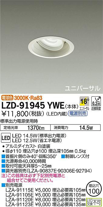 DAIKO Âç¸÷Åŵ¡ ¥æ¥Ë¥Ð¡¼¥µ¥ë¥À¥¦¥ó¥é¥¤¥È LZD-91945YWE