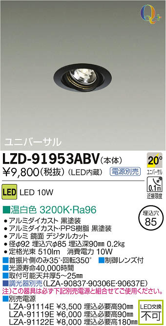 ¢£¼ó¿¶ÊÒ¦¤Î¤ß35¡ë¡¦²óž350¡ë|¢£À©¸æ¥ì¥ó¥ºÉÕ|¢£¸÷¸»¼÷Ì¿40¡¤000»þ´Ö|¢£¼èÉÕ²Äǽŷ°æ¸ü5¡Á25mm|¢£Ä´¸÷´ïÊÌÇä¡ÊLZA-90837¡¦90306E¡¦90637E¡Ë|Ãí¡Ë¤³¤Î´ï¶ñ¤Ïɬ¤º²¼µÊÌÇäÅŸ»¤ÈÁȹ礻¤Æ¤´»ÈÍѤ¯¤À¤µ¤¤¡£|¢£ÊÌÇäÅŸ»¡¡LZA-91114E ¡ï3¡¤500 Ëä¹þɬÍ×¹â90mm LZA-91119E ¡ï6¡¤000 Ëä¹þɬÍ×¹â90mm LZA-91122E ¡ï8¡¤000 Ëä¹þɬÍ×¹â180mm|Äê³Ê¸÷« 510lm¡¡¾ÃÈñÅÅÎÏ 10W|Ra96