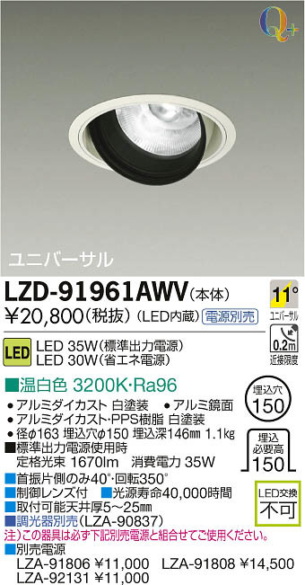¢£¼ó¿¶ÊÒ¦¤Î¤ß40¡ë¡¦²óž350¡ë|¢£À©¸æ¥ì¥ó¥ºÉÕ|¢£¸÷¸»¼÷Ì¿40¡¤000»þ´Ö|¢£¼èÉÕ²Äǽŷ°æ¸ü5¡Á25mm|¢£Ä´¸÷´ïÊÌÇä¡ÊLZA-90837¡Ë|Ãí¡Ë¤³¤Î´ï¶ñ¤Ïɬ¤º²¼µÊÌÇäÅŸ»¤ÈÁȹ礻¤Æ¤´»ÈÍѤ¯¤À¤µ¤¤¡£|¢£ÊÌÇäÅŸ»¡¡LZA-91806 ¡ï11¡¤000 LZA-91808 ¡ï14¡¤500 LZA-92131 ¡ï11¡¤000|¢£É¸½à½ÐÎÏÅŸ»»ÈÍÑ»þ¡¡Äê³Ê¸÷« 1670lm¡¡¾ÃÈñÅÅÎÏ 35W|Ra96