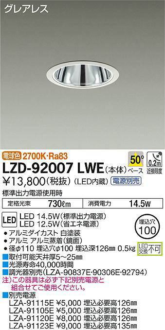 ¢£ÊÌÇäÅŸ»¡¡LZA-91115E ¡ï5¡¤000 Ëä¹þɬÍ×¹â126mm¡¡LZA-91105E ¡ï5¡¤000 Ëä¹þɬÍ×¹â126mm¡¡LZA-91120E ¡ï8¡¤000 Ëä¹þɬÍ×¹â126mm¡¡LZA-91123E ¡ï9¡¤000 Ëä¹þɬÍ×¹â135mm¡¢É¸½à½ÐÎÏÅŸ»»ÈÍÑ»þ Äê³Ê¸÷« 730lm ¾ÃÈñÅÅÎÏ 14.5W¡¢Ra83