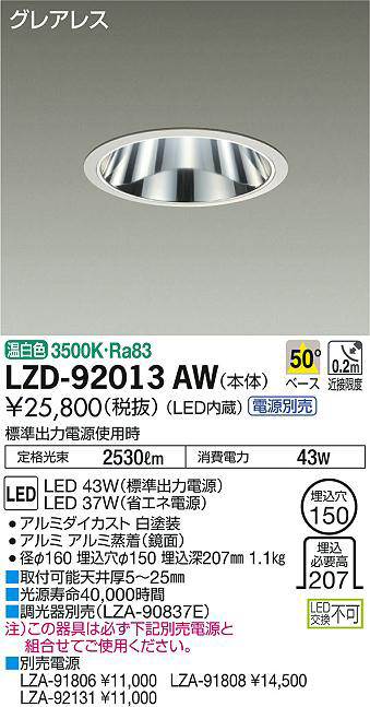 ¢£ÊÌÇäÅŸ»¡¡LZA-91806 ¡ï11¡¤000¡¡LZA-91808 ¡ï14¡¤500¡¡LZA-92131 ¡ï11¡¤000¡¢É¸½à½ÐÎÏÅŸ»»ÈÍÑ»þ Äê³Ê¸÷« 2530lm ¾ÃÈñÅÅÎÏ 43W¡¢Ra83