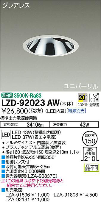 ¢£ÊÌÇäÅŸ»¡¡LZA-91806 ¡ï11¡¤000¡¡LZA-91808 ¡ï14¡¤500¡¡LZA-92131 ¡ï11¡¤000¡¢É¸½à½ÐÎÏÅŸ»»ÈÍÑ»þ¡¡Äê³Ê¸÷« 3410lm¡¡¾ÃÈñÅÅÎÏ 43W¡¢Ra83