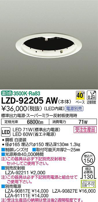DAIKO Âç¸÷Åŵ¡ ¥À¥¦¥ó¥é¥¤¥ÈËÜÂÎ LZD-92205AW