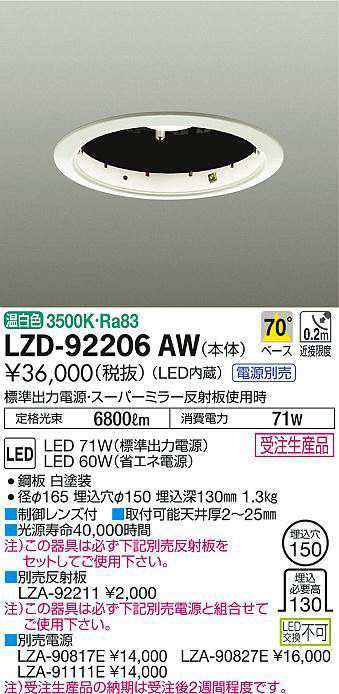 DAIKO Âç¸÷Åŵ¡ ¥À¥¦¥ó¥é¥¤¥ÈËÜÂÎ LZD-92206AW