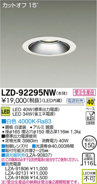 ¢£À©¸æ¥ì¥ó¥ºÉÕ|¢£¸÷¸»¼÷Ì¿40¡¤000»þ´Ö|¢£¼èÉÕ²Äǽŷ°æ¸ü2¡Á25mm|¢£Ä´¸÷´ïÊÌÇä¡ÊLZA-90837¡Ë|Ãí¡Ë¤³¤Î´ï¶ñ¤Ïɬ¤º²¼µÊÌÇäÅŸ»¤ÈÁȹ礻¤Æ¤´»ÈÍѤ¯¤À¤µ¤¤¡£|¢£ÊÌÇäÅŸ»¡¡LZA-91806 ¡ï11¡¤000 LZA-91808 ¡ï14¡¤500 LZA-92131 ¡ï11¡¤000|Ãí¡Ë¼õÃíÀ¸»ºÉʤÎǼ´ü¤Ï¼õÃí¸å£²½µ´ÖÄøÅ٤Ǥ¹¡£|¢£É¸½à½ÐÎÏÅŸ»»ÈÍÑ»þ¡¡Äê³Ê¸÷« 3980lm¡¡¾ÃÈñÅÅÎÏ 40W|Ra83