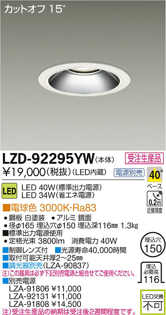 ¢£À©¸æ¥ì¥ó¥ºÉÕ|¢£¸÷¸»¼÷Ì¿40¡¤000»þ´Ö|¢£¼èÉÕ²Äǽŷ°æ¸ü2¡Á25mm|¢£Ä´¸÷´ïÊÌÇä¡ÊLZA-90837¡Ë|Ãí¡Ë¤³¤Î´ï¶ñ¤Ïɬ¤º²¼µÊÌÇäÅŸ»¤ÈÁȹ礻¤Æ¤´»ÈÍѤ¯¤À¤µ¤¤¡£|¢£ÊÌÇäÅŸ»¡¡LZA-91806 ¡ï11¡¤000 LZA-91808 ¡ï14¡¤500 LZA-92131 ¡ï11¡¤000|Ãí¡Ë¼õÃíÀ¸»ºÉʤÎǼ´ü¤Ï¼õÃí¸å£²½µ´ÖÄøÅ٤Ǥ¹¡£|¢£É¸½à½ÐÎÏÅŸ»»ÈÍÑ»þ¡¡Äê³Ê¸÷« 3800lm¡¡¾ÃÈñÅÅÎÏ 40W|Ra83