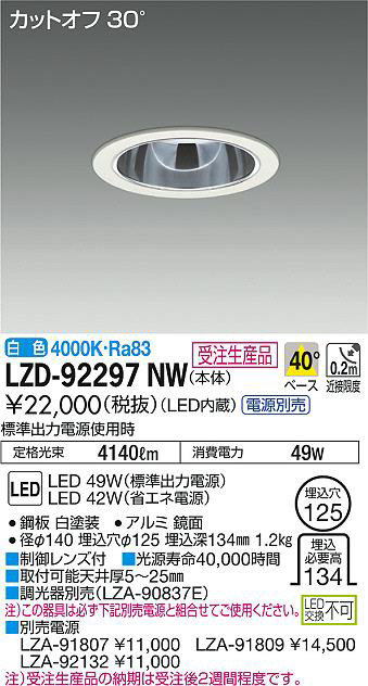 ¢£ÊÌÇäÅŸ»¡¡LZA-91807 ¡ï11¡¤000¡¡LZA-91809 ¡ï14¡¤500¡¡LZA-92132 ¡ï11¡¤000¡¢Ãí¡Ë¼õÃíÀ¸»ºÉʤÎǼ´ü¤Ï¼õÃí¸å£²½µ´ÖÄøÅ٤Ǥ¹¡£¡¢É¸½à½ÐÎÏÅŸ»»ÈÍÑ»þ Äê³Ê¸÷« 4140lm ¾ÃÈñÅÅÎÏ 49W¡¢Ra83